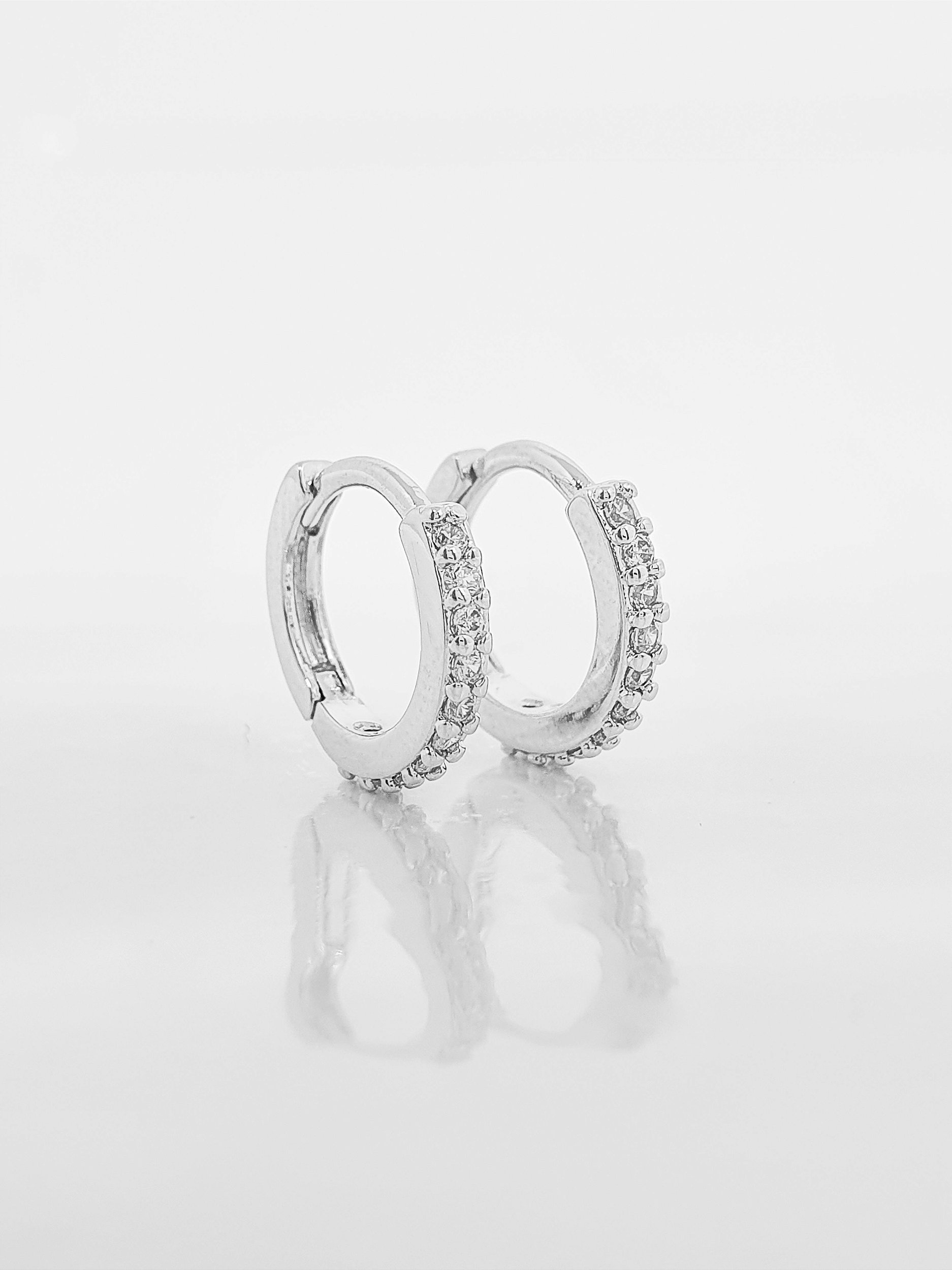 Brinco Masculino Par Argola Cravejada 1 Fileira M (12,2X1,9mm) Banhado A Ouro Branco BRI035