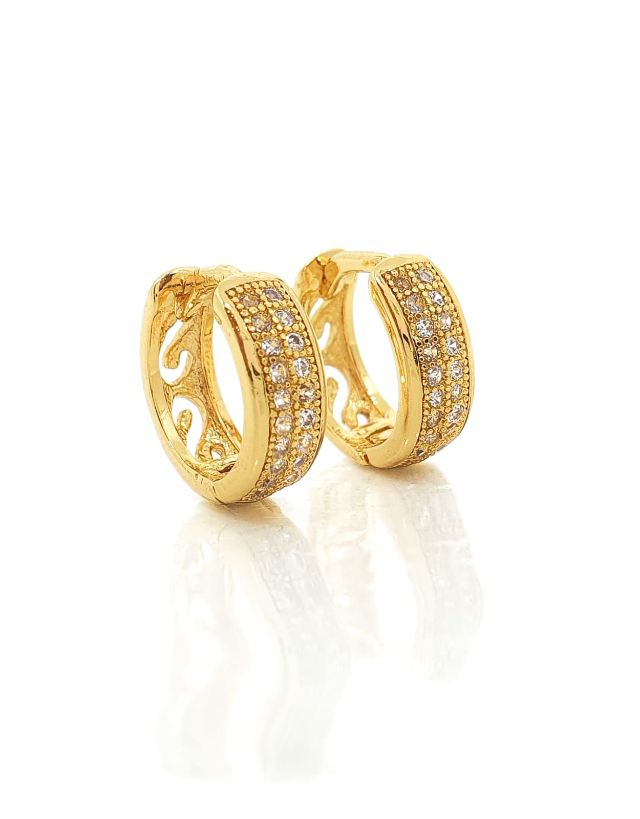 Brinco Masculino Par Argola Cravejada 2 Fileiras (11,5X4mm) Banhada A Ouro 18k BRI146