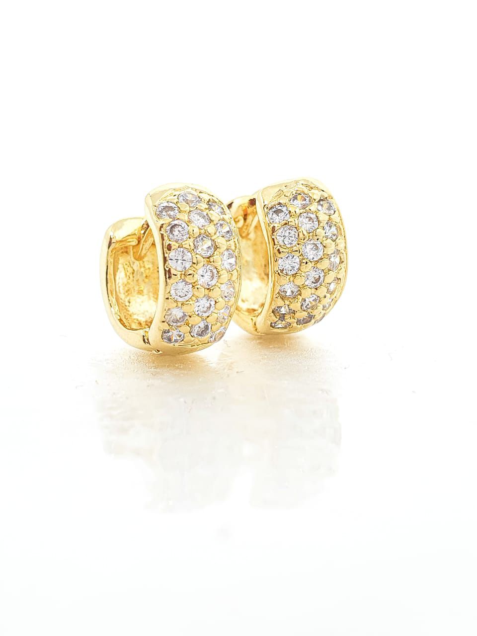 Brinco Masculino Par Argola Cravejada Com 19 Pedras M (12X5,5mm) Banhada A Ouro 18K