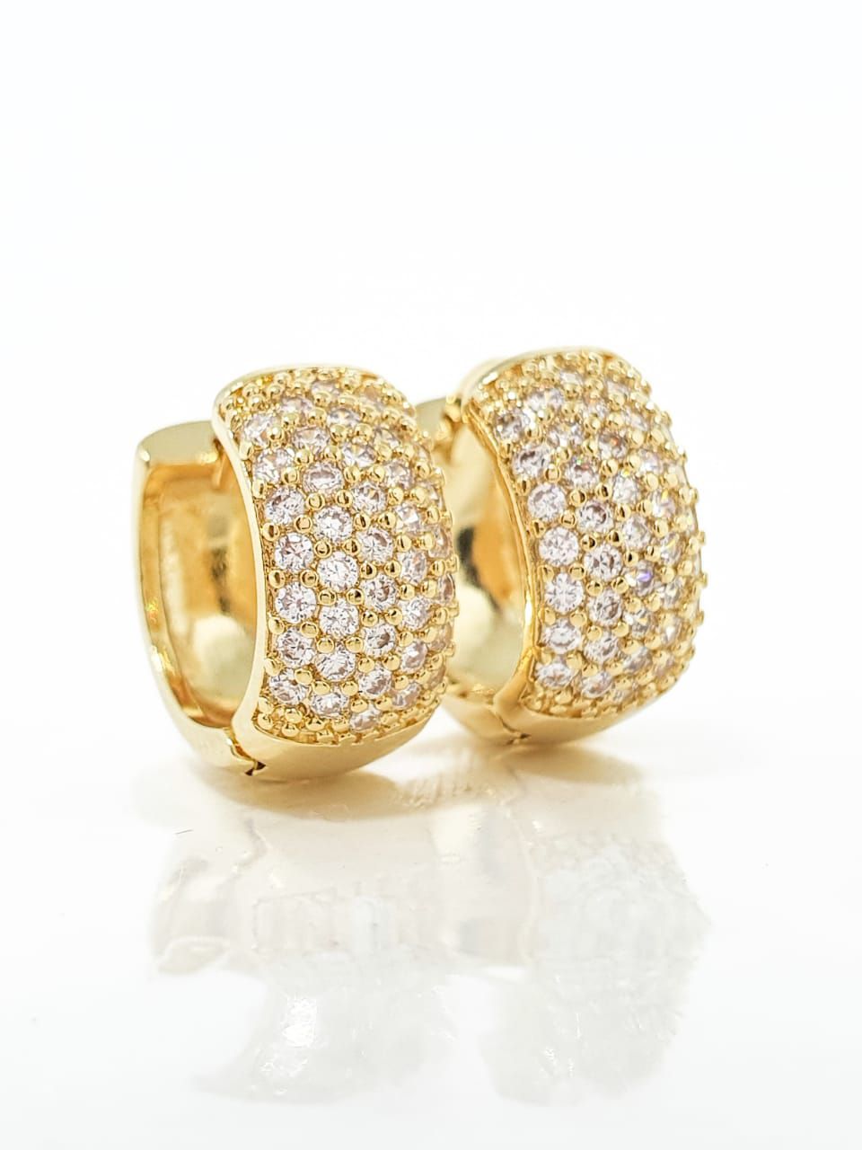 Brinco Masculino Par Argola Cravejada Com 29 Pedras G (14X6,8mm) Banhada A Ouro 18K BRI053