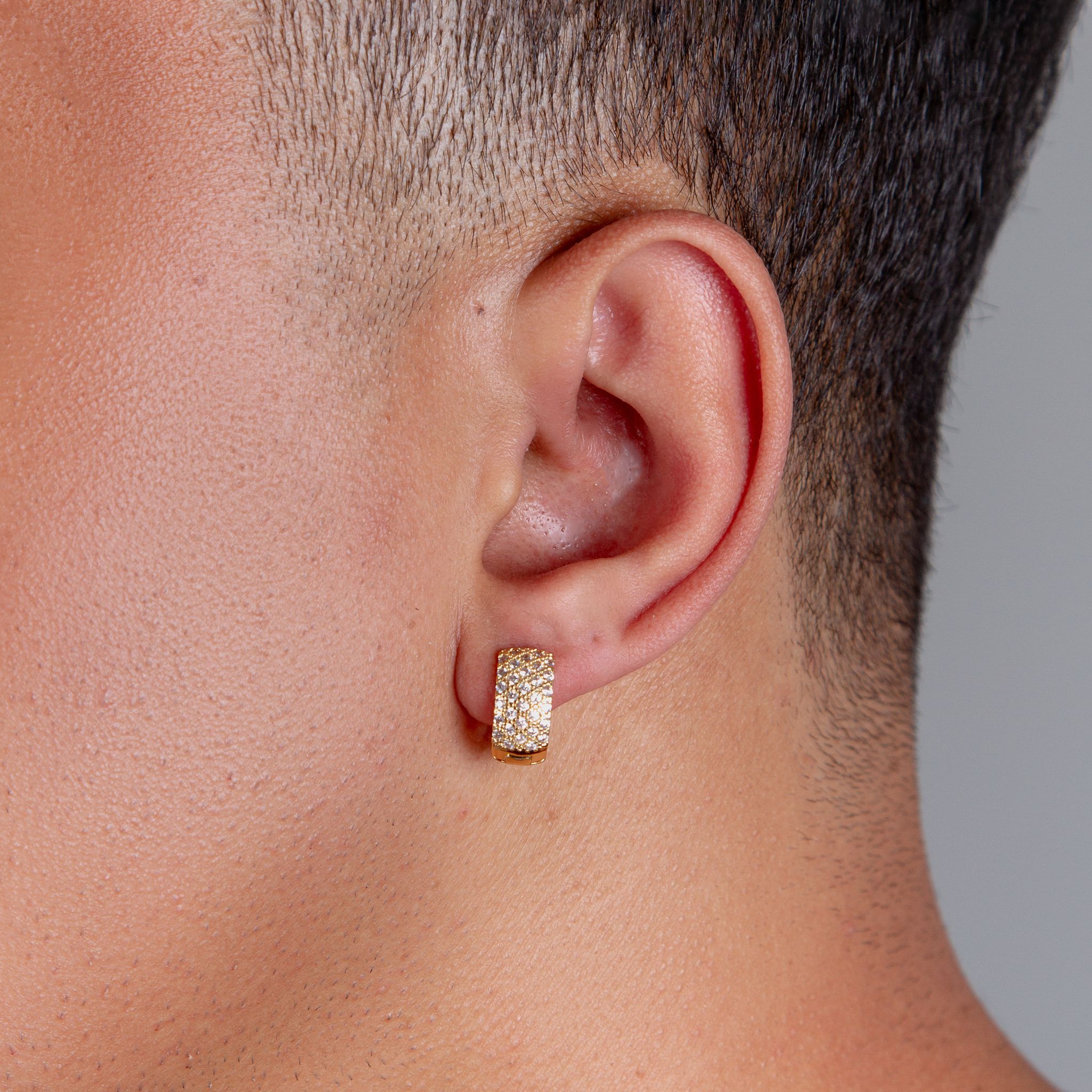 Brinco Masculino Par Argola Cravejada Com 32 Pedras G (14X6,4mm) Banhada A Ouro 18K BRI021