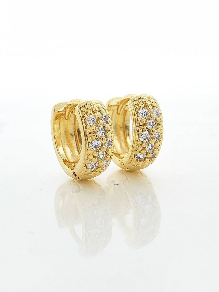 Brinco Masculino Par Argola Cravejada Com 8 Pedras (11,6X4,3mm) Banhada A Ouro 18K BRI040