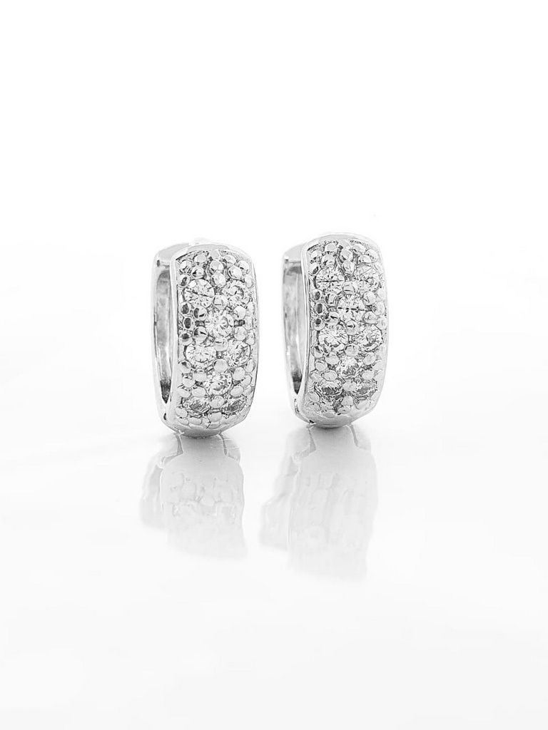 Brinco Masculino Par Argola Cravejada Com 8 Pedras (11,6X4,3mm) Banhada A Ouro Branco BRI006