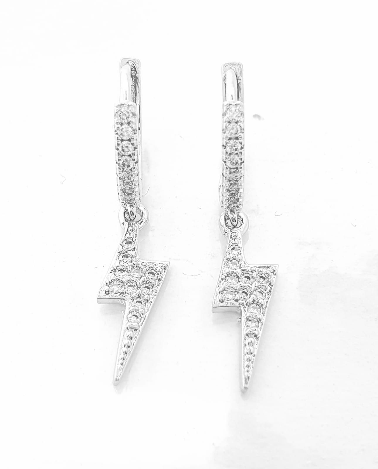 Brinco Masculino Par Argola Cravejada Com Raio Pendurada Banhada A Ouro Branco BRI017