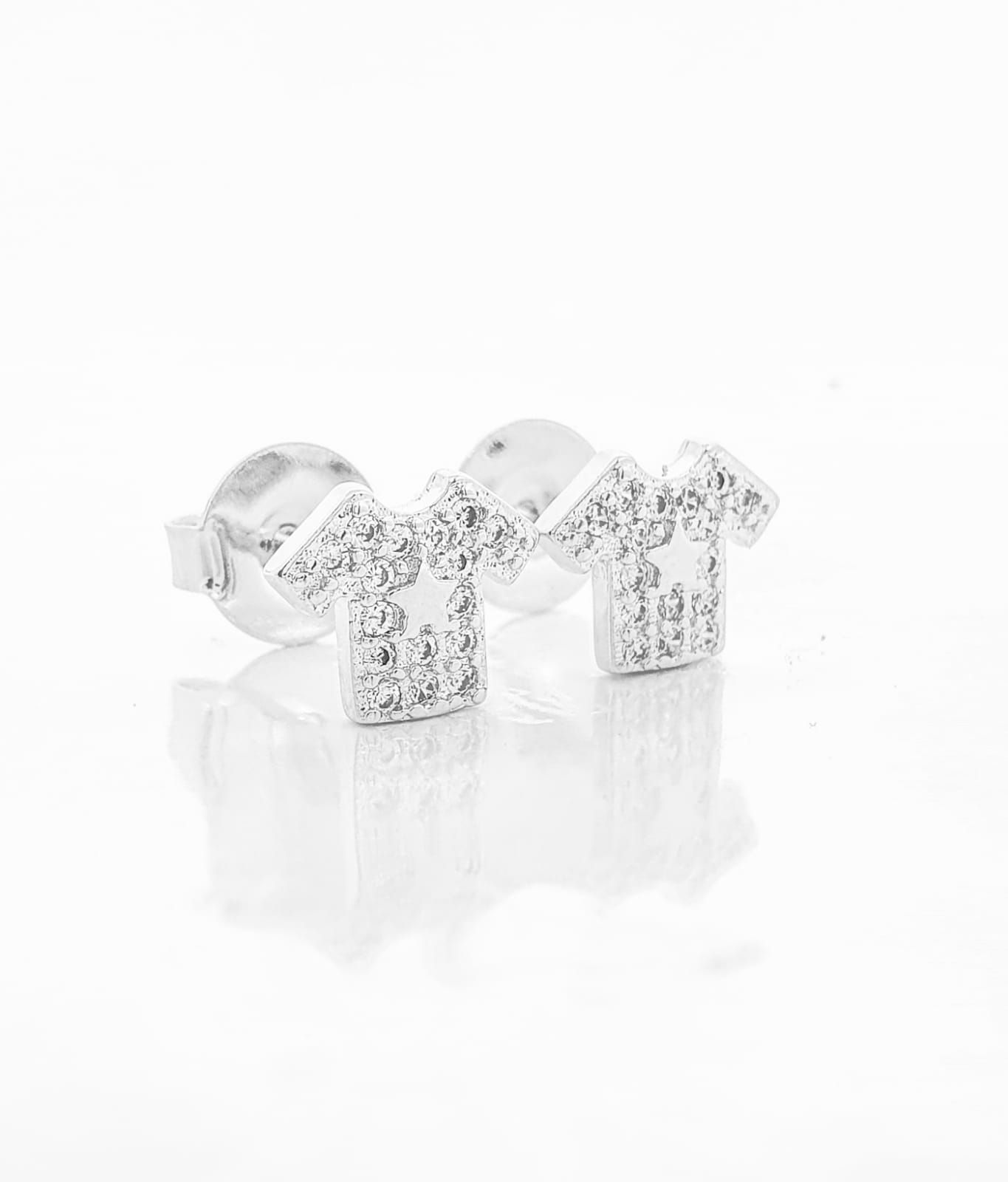 Brinco Masculino Par Camisa De Time Cravejado (9X7mm) Banhado A Ouro Branco BRI110