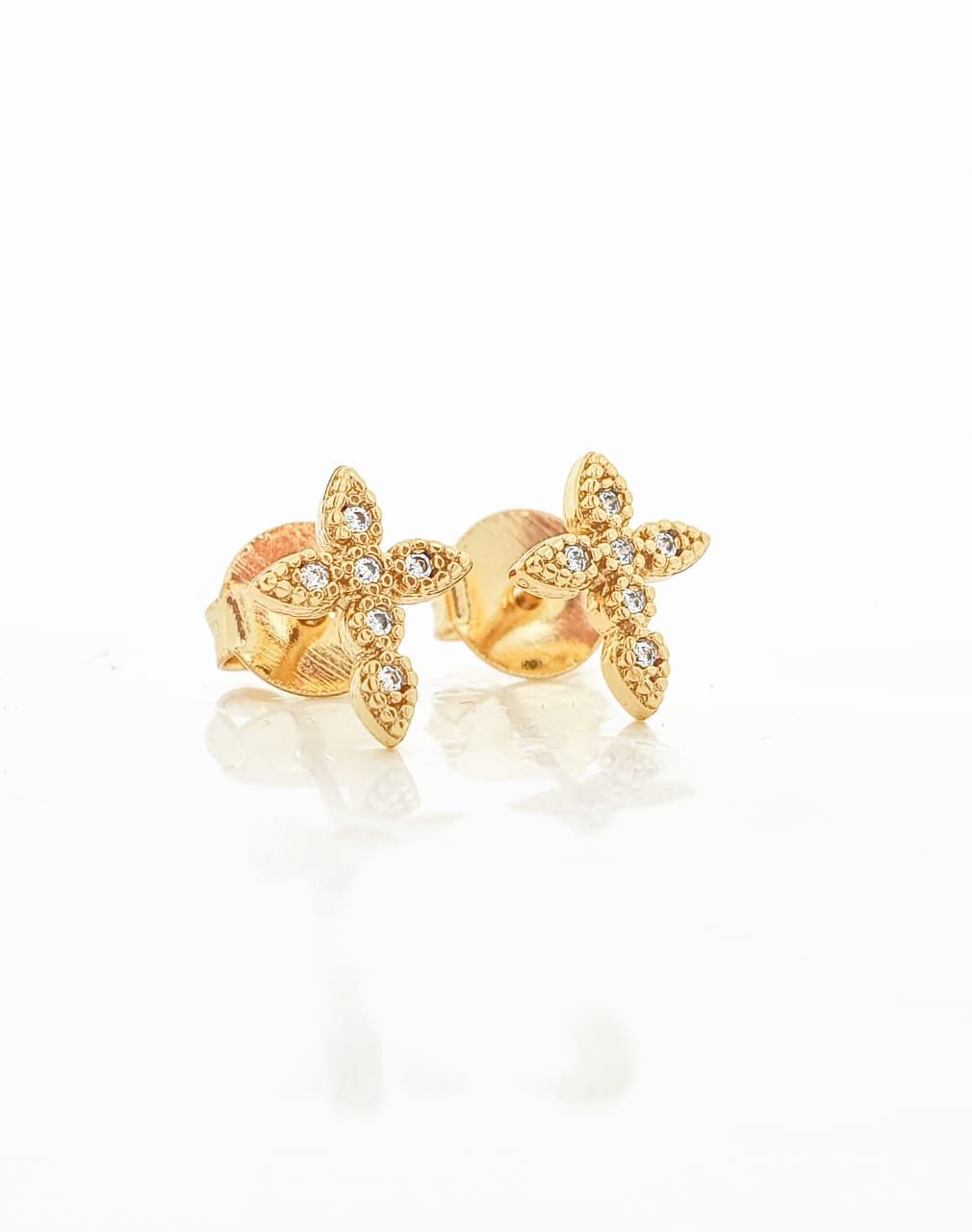 Brinco Masculino Par Cruz Cravejada Com 6 Pedras (9,6X7,7mm) Banhado A Ouro 18k BRI103