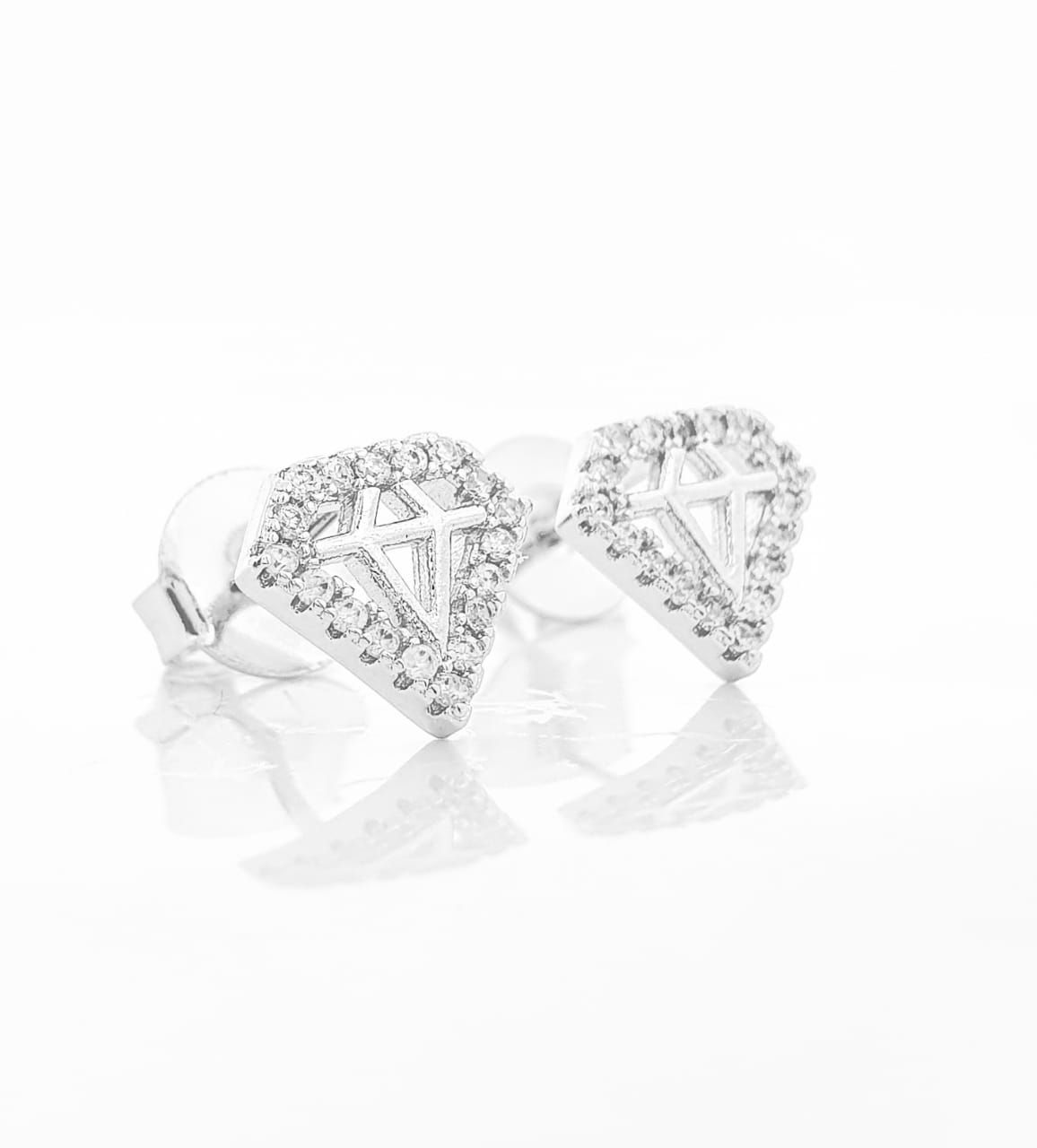 Brinco Masculino Par Diamante Cravejado G (12,3X9,7mm) Banhado A Ouro Branco BRI047