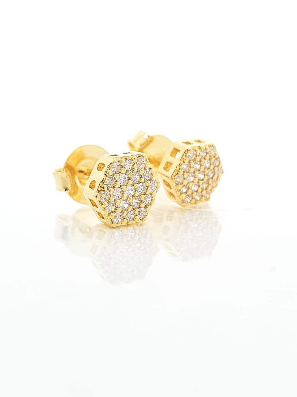 Brinco Masculino Par Hexagonal Cravejado (7mm) Banhado A Ouro 18k BRI149