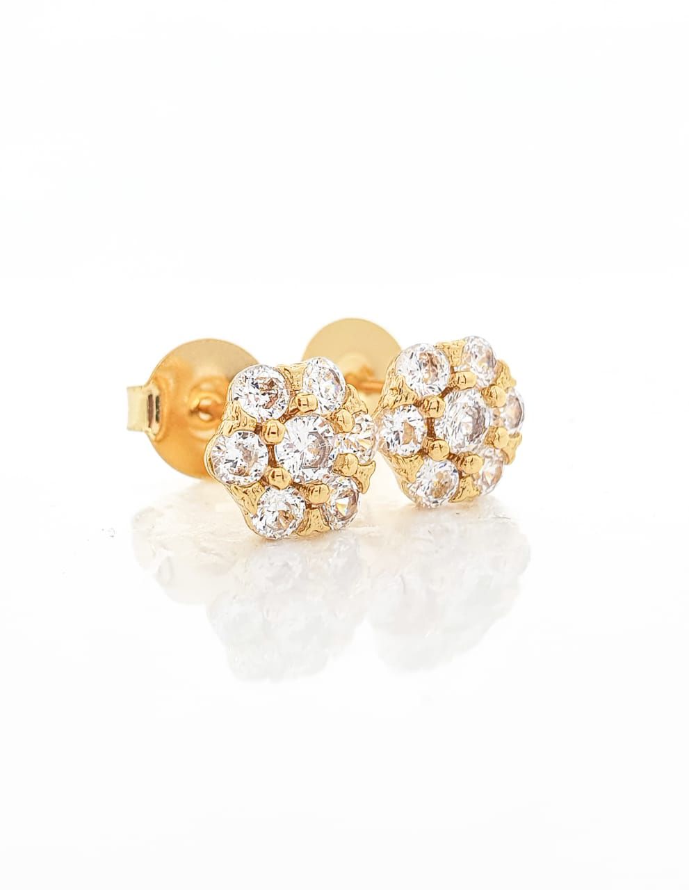 Brinco Masculino Par Imperial Redondo com 7 Pedras (8,2mm) Banhado A Ouro 18k