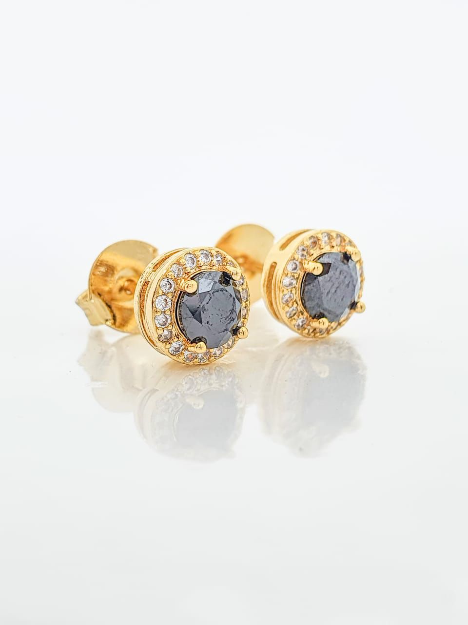 Brinco Masculino Par Redondo Cravejado Fílip 1 Pedra Preta (7mm) Banhado A Ouro 18k BRI074