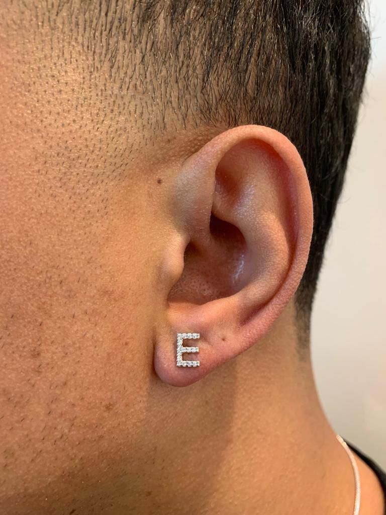 Brinco Masculino Par Letra E (7,5X5mm) Banhado A Ouro Branco BRI121