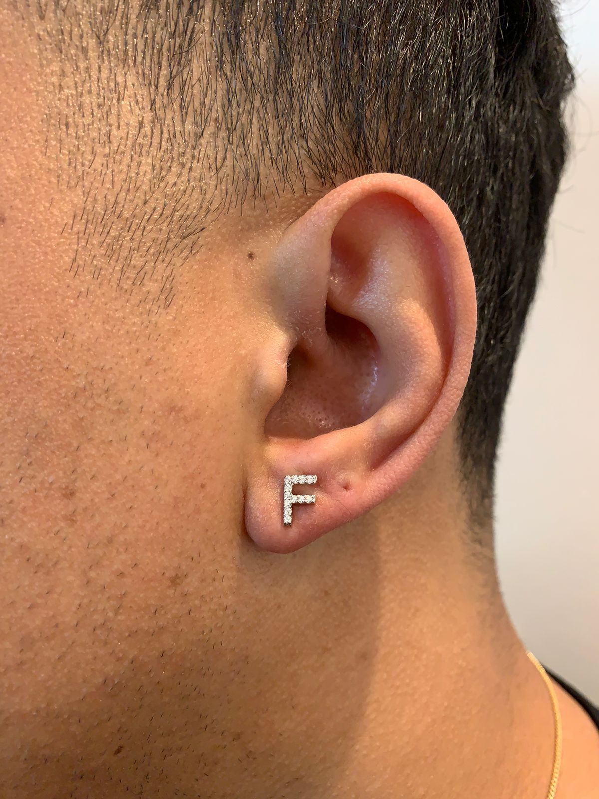 Brinco Masculino Par Letra F (7,6X5,2mm) Banhado A Ouro Branco