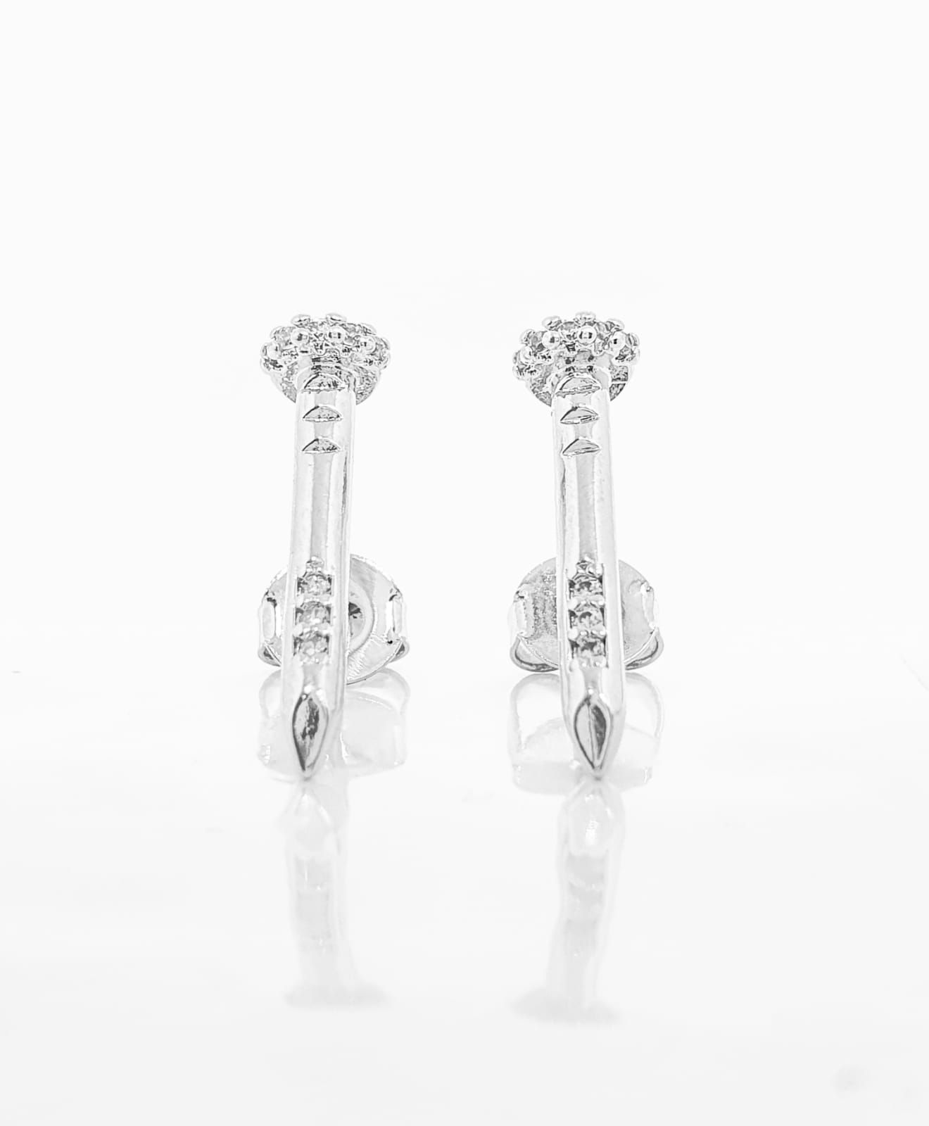 Brinco Masculino Par Prego Cravejado (21,6X5,8mm) Banhado A Ouro Branco