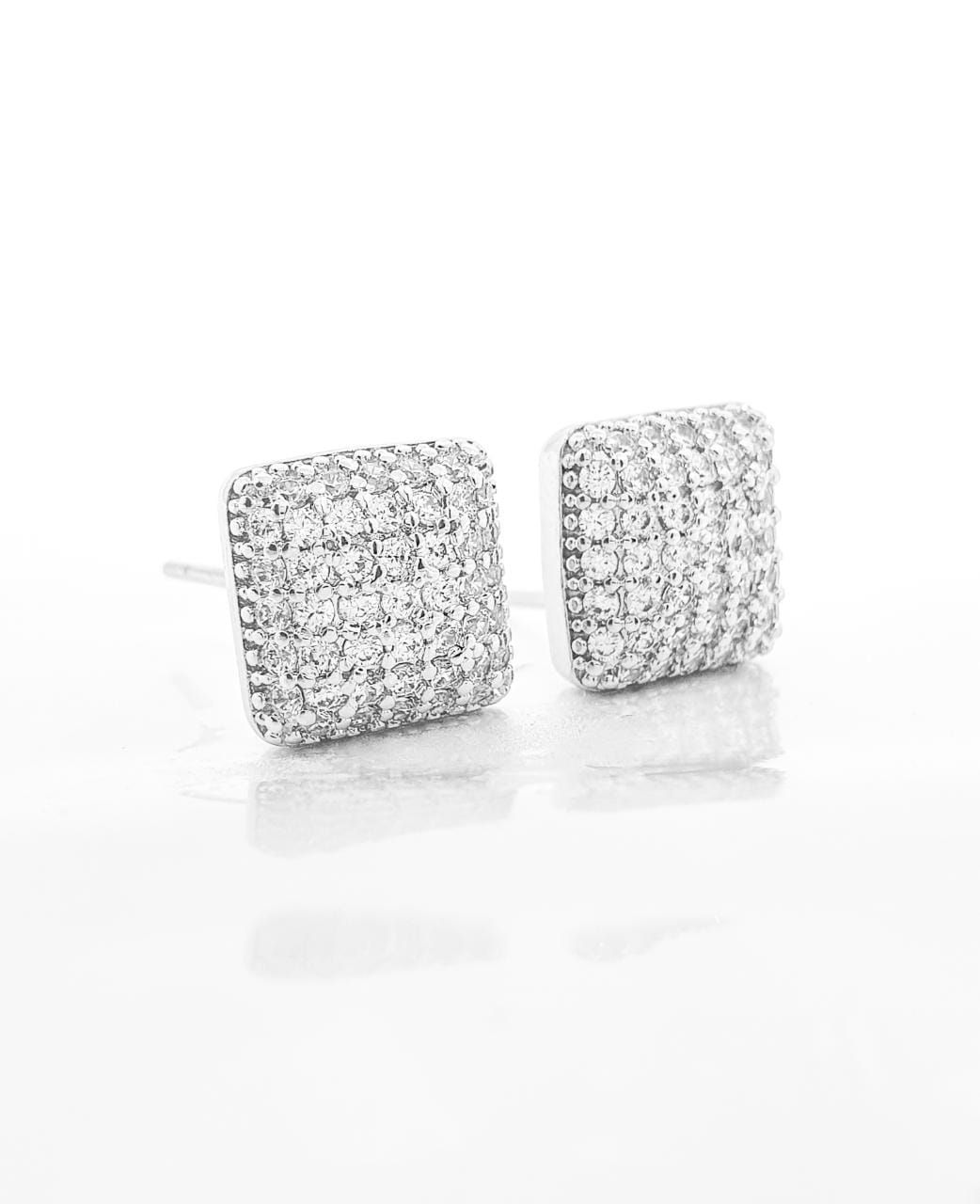 Brinco Masculino Par Quadrado Cravejado Com 45 Pedras (10mm) Banhado A Ouro Branco BRI058