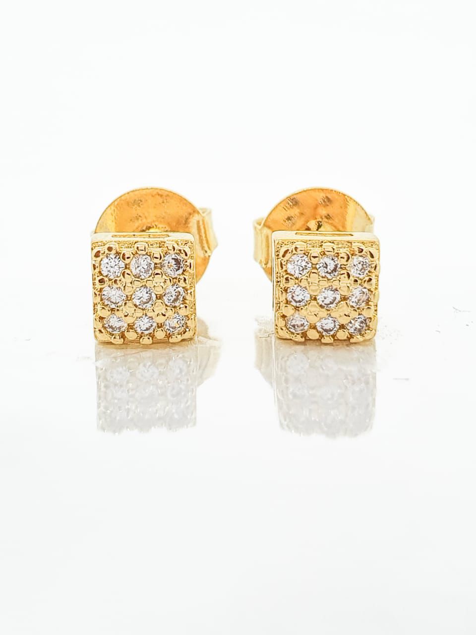 Brinco Masculino Par Quadrado Cravejado Com 9 Pedras (5,5X5,5mm) Banhado A Ouro 18k BRI043