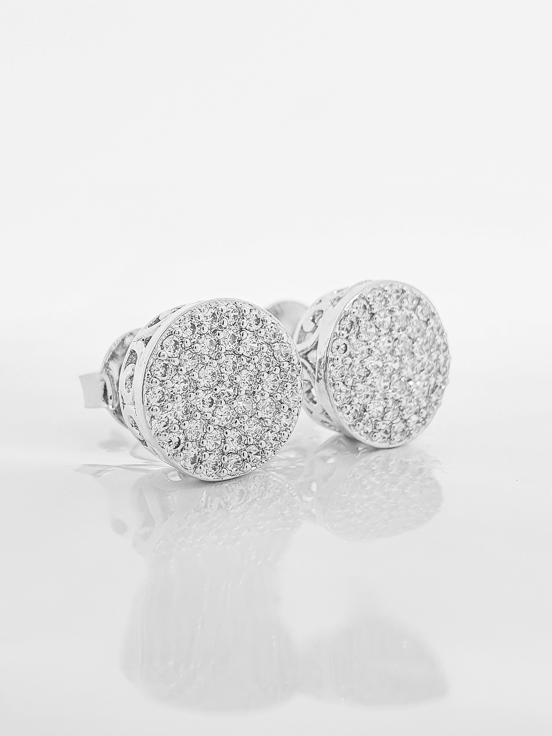 Brinco Masculino Par Redondo Cravejado Torre 2 (10mm) Banhado A Ouro Branco BRI156