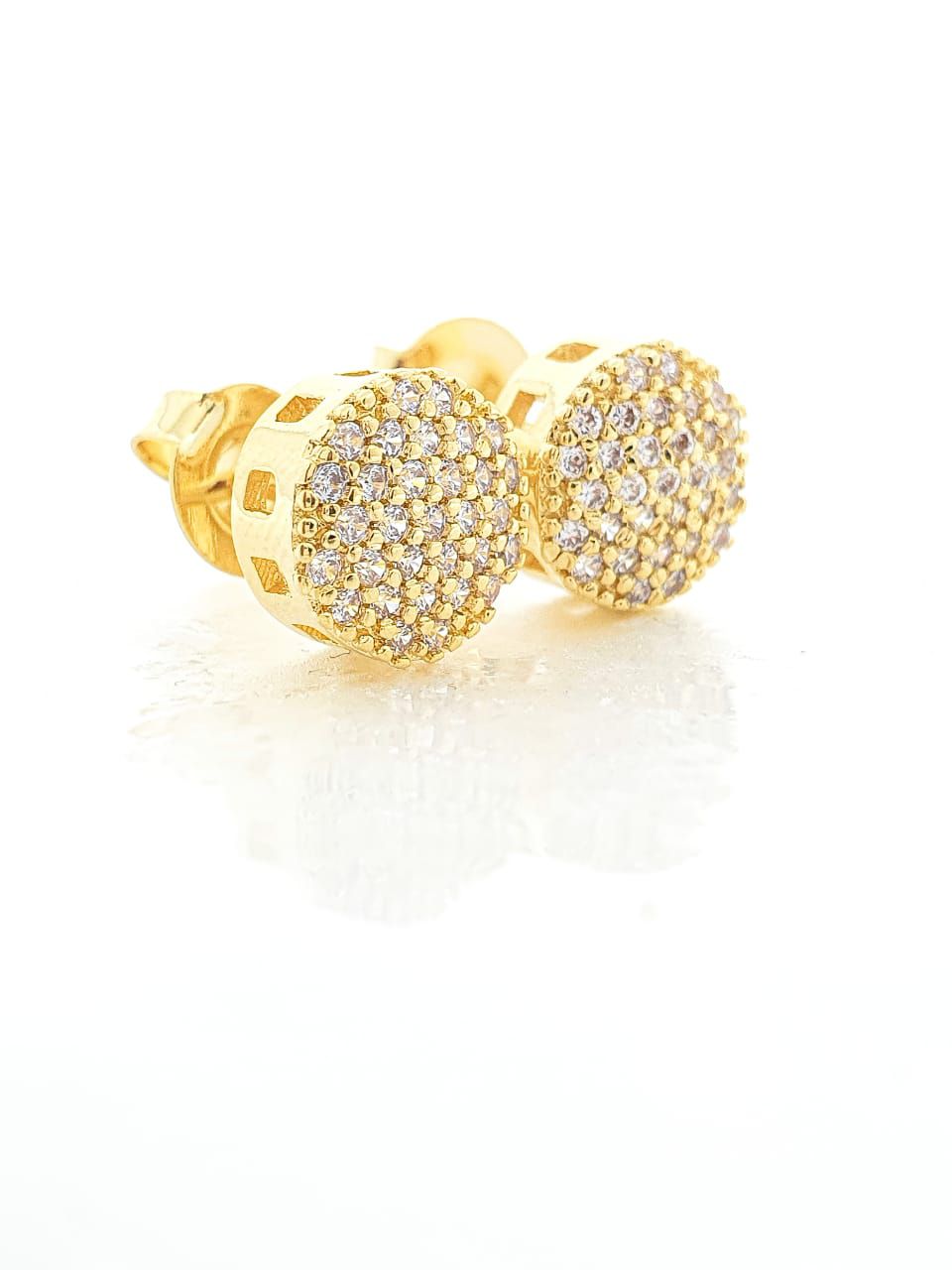 Brinco Masculino Par Redondo Torre Cravejado (9mm) Banhado A Ouro 18k BRI064