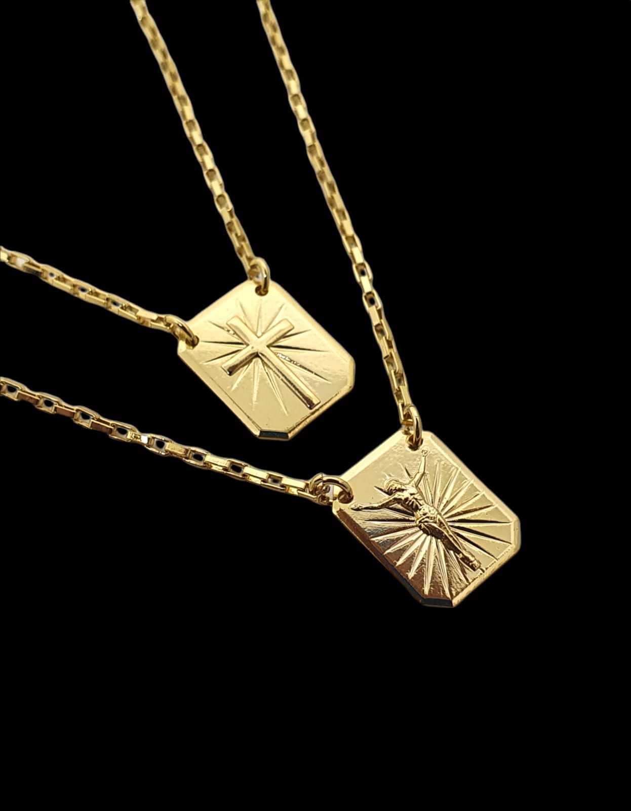 Escapúlario Corrente Elo Tijolinho Cruz 70cm Medalha Octagonal 12X15mm Banhado a Ouro 18k ESC003