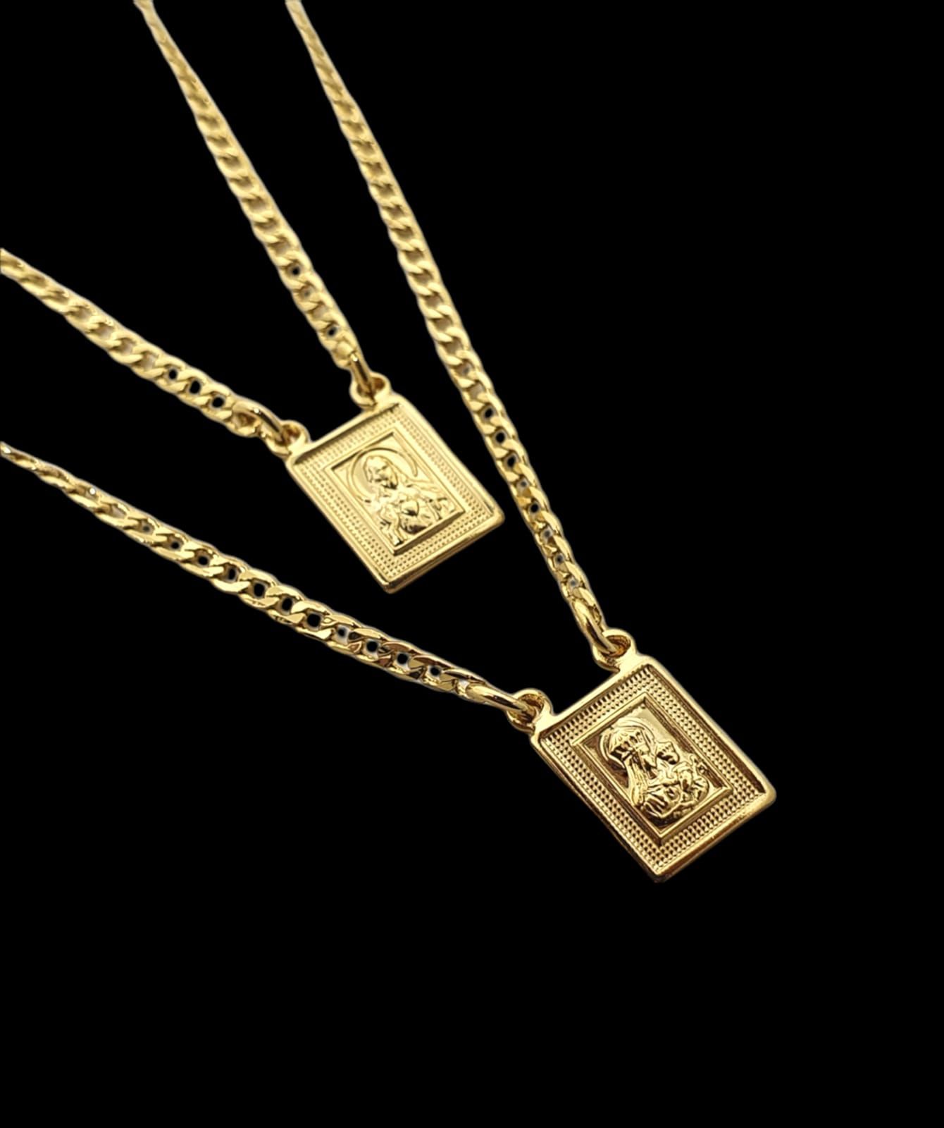 Escapúlario Corrente Grumet Jesus 70cm Medalha 8X10mm Banhado a Ouro 18k ESC004