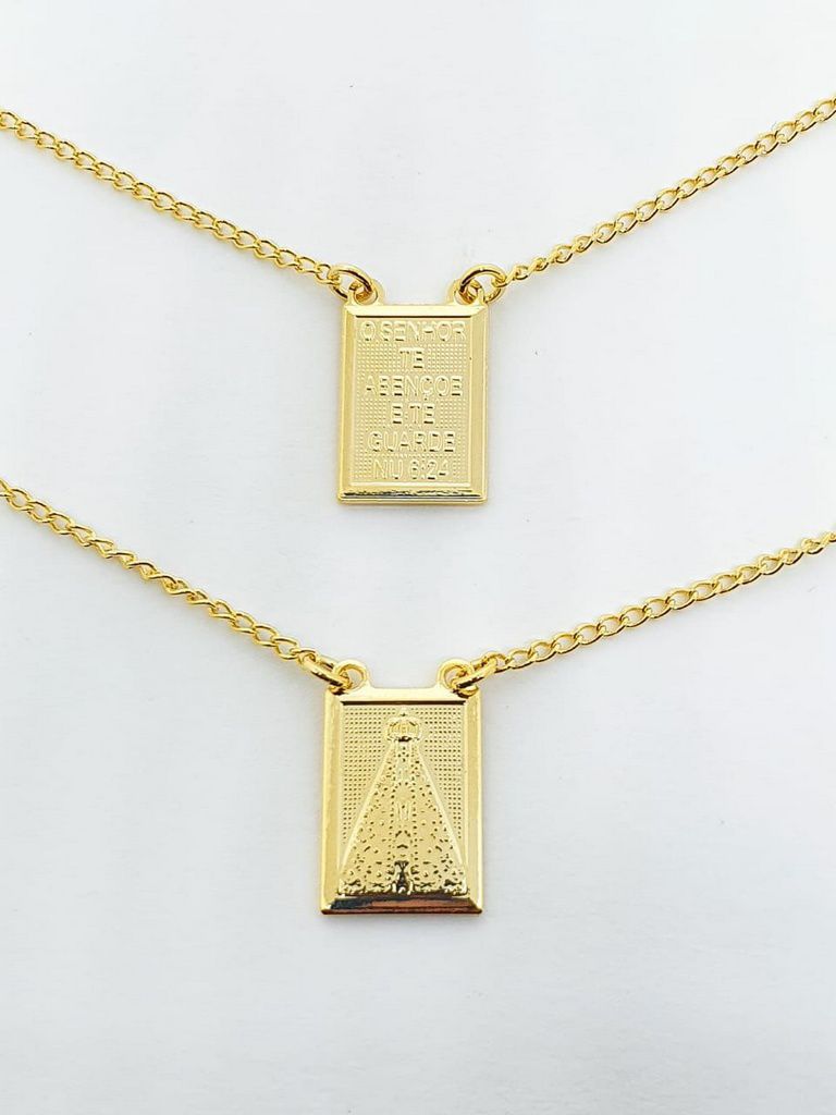 Escapulário Corrente Grumet Jesus/Nossa Senhora 70cm 10mmX14MM Banhado A Ouro 18k ESC007