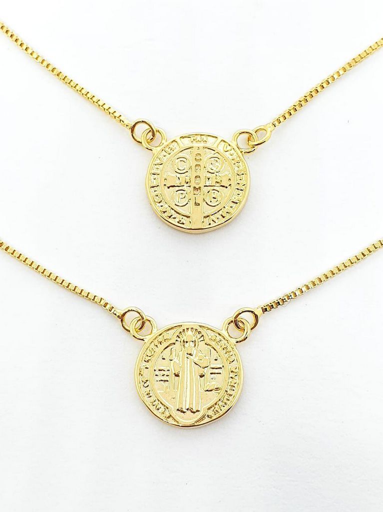 Escapúlario Corrente Veneziana São Bento Redondo 70cm Medalha 12mm Banhado a Ouro 18k ESC008