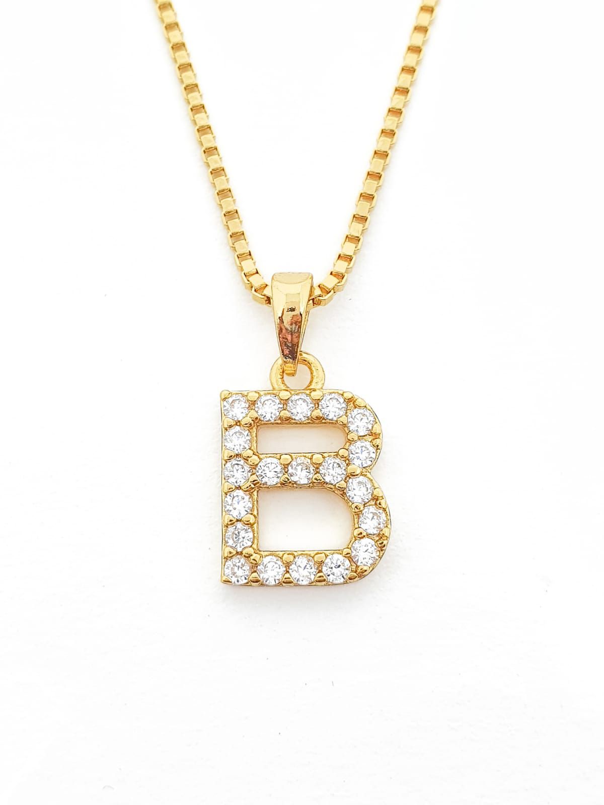 Pingente Cravejado Letra B (10X9CM) Banhado A Ouro 18k PIN032