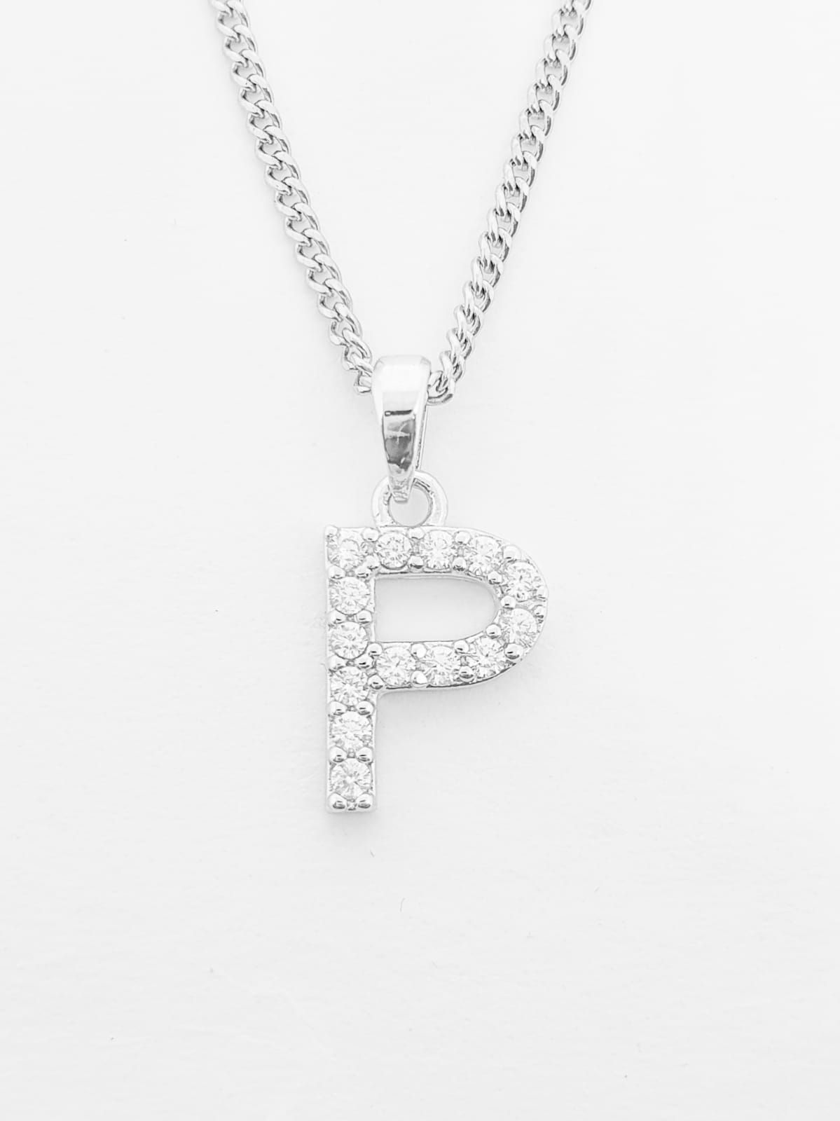 Pingente Cravejado Letra P (10X9CM) Banhado A Ouro Branco PIN041