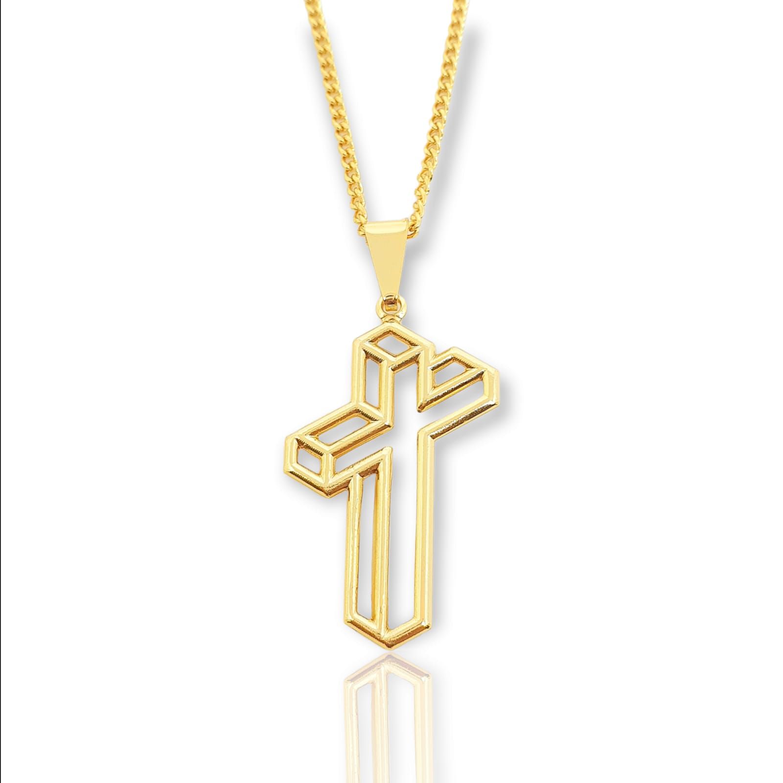 Pingente Cruz 3D (16x28mm) Banhada A Ouro 18k PIN072