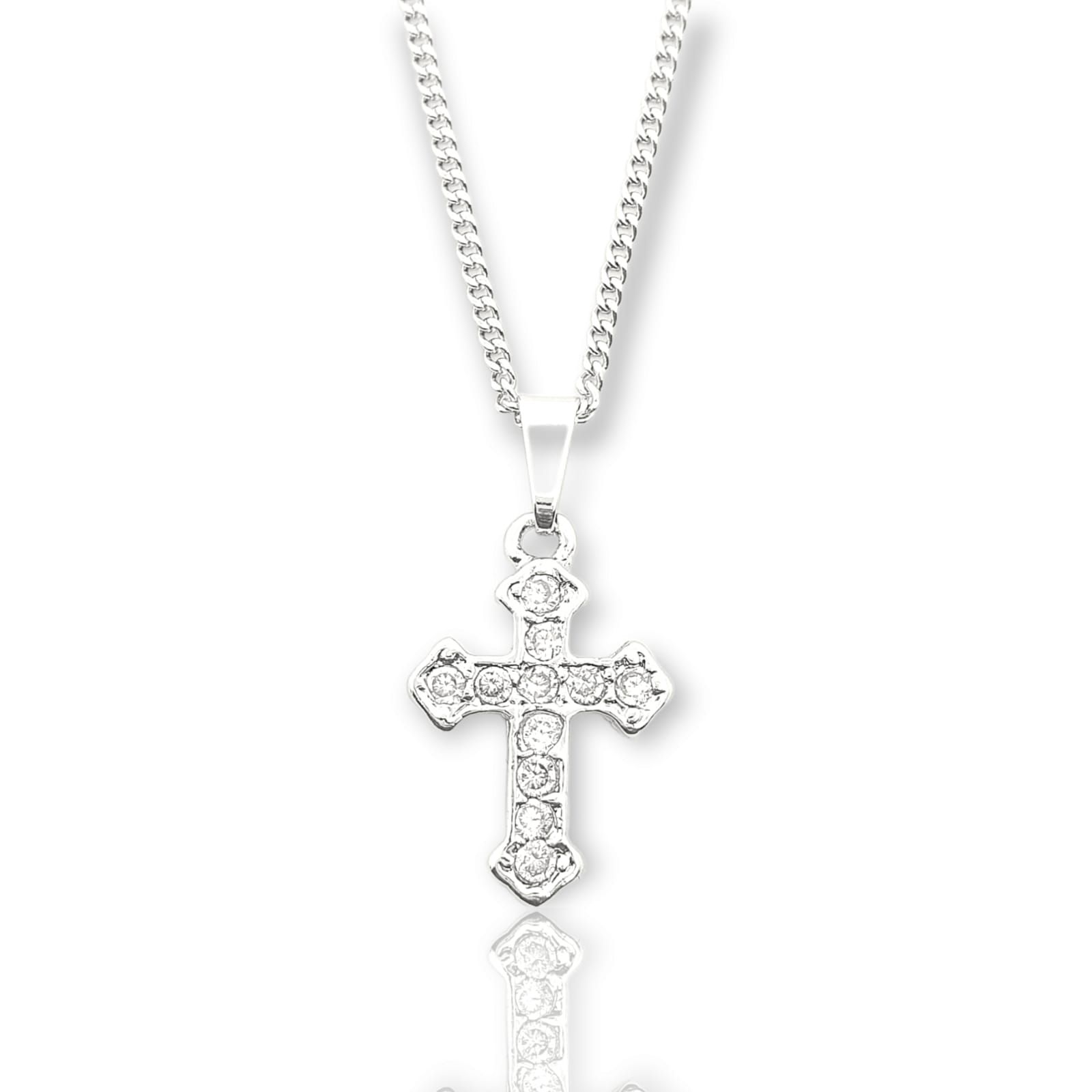 Pingente Cruz Cravejada (13,2X19,7mm) Banhado A Ouro Branco PIN069