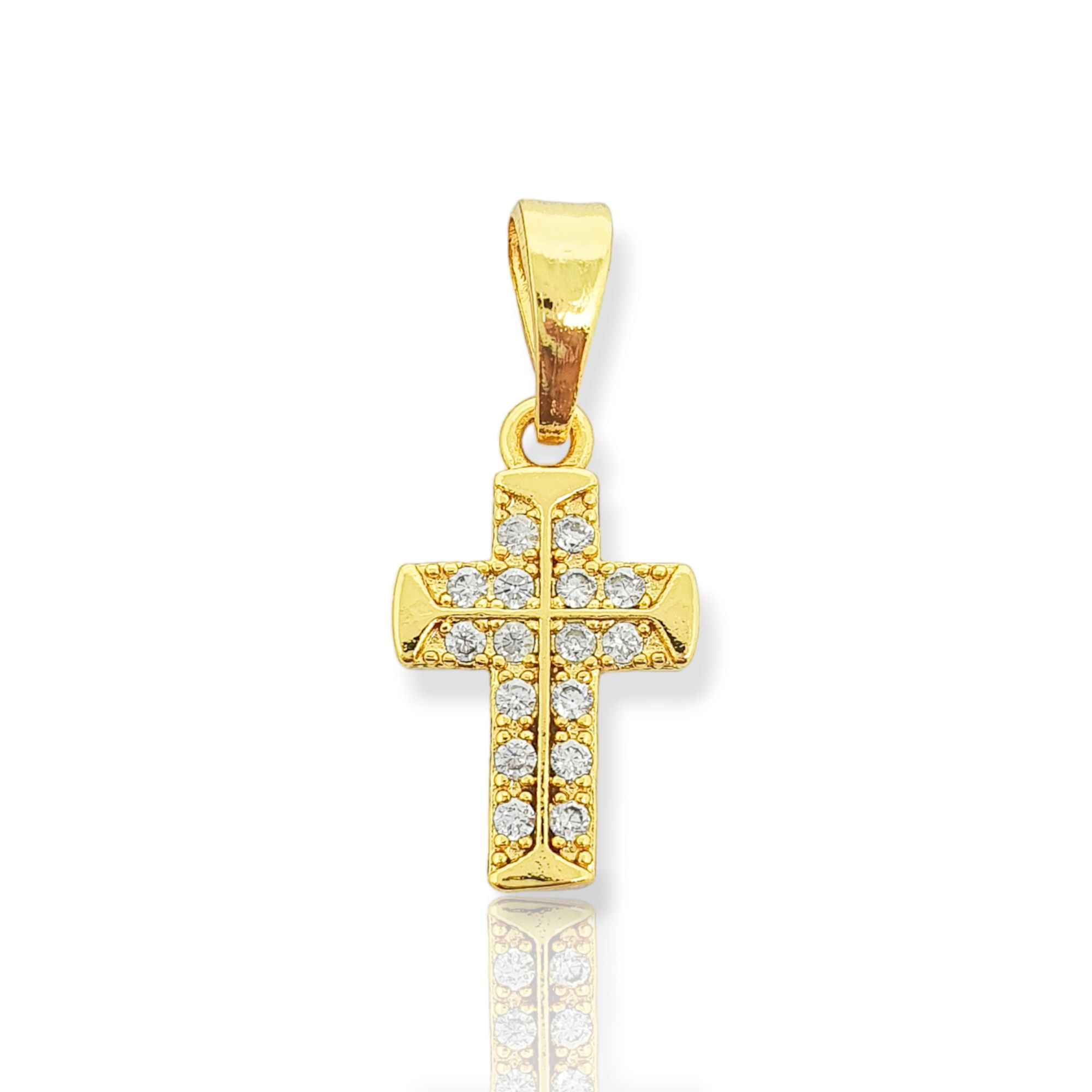 Pingente Cruz Cravejada 2 Fileiras (13,5x10mm) Banhado A Ouro 18k PIN108