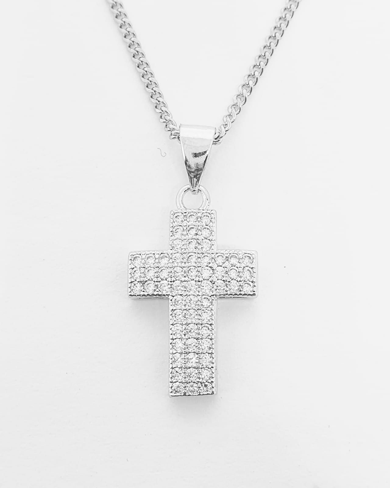 Pingente Cruz Cravejada (20X12,4mm) Banhado A Ouro Branco PIN037