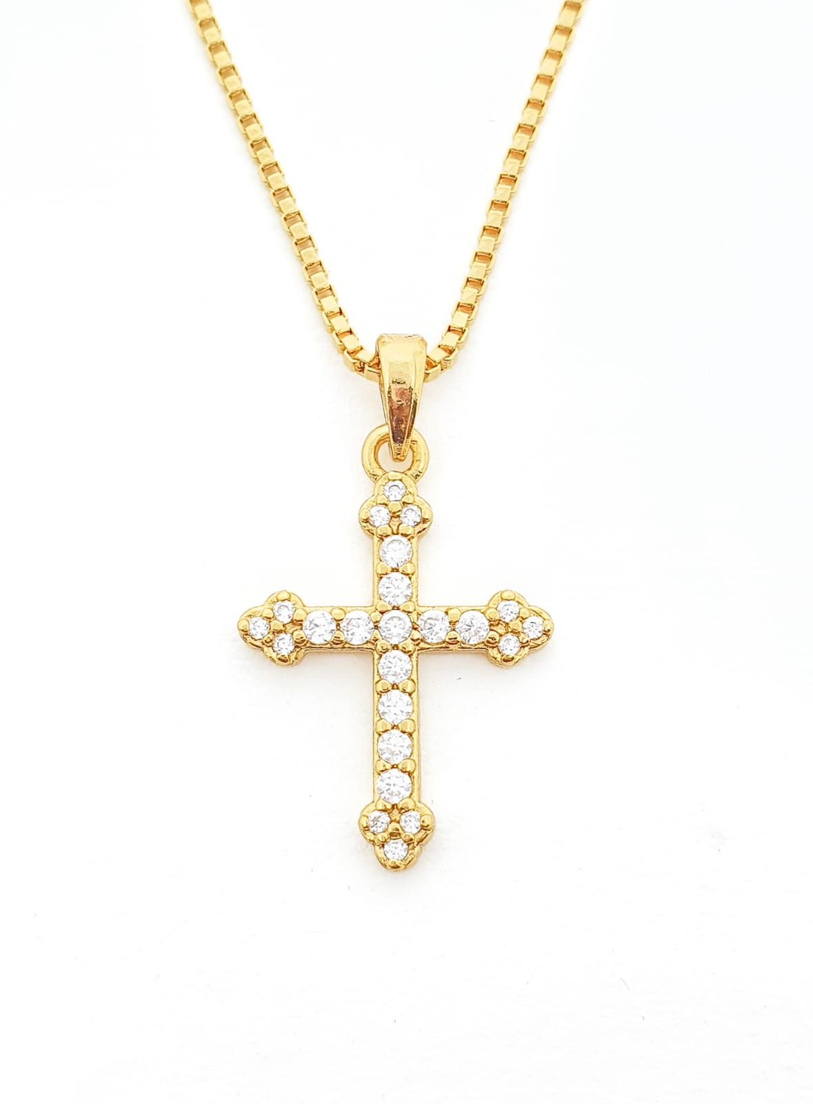 Pingente Cruz Cravejada Palito (13,2X19,7mm) Banhado A Ouro 18k PIN003