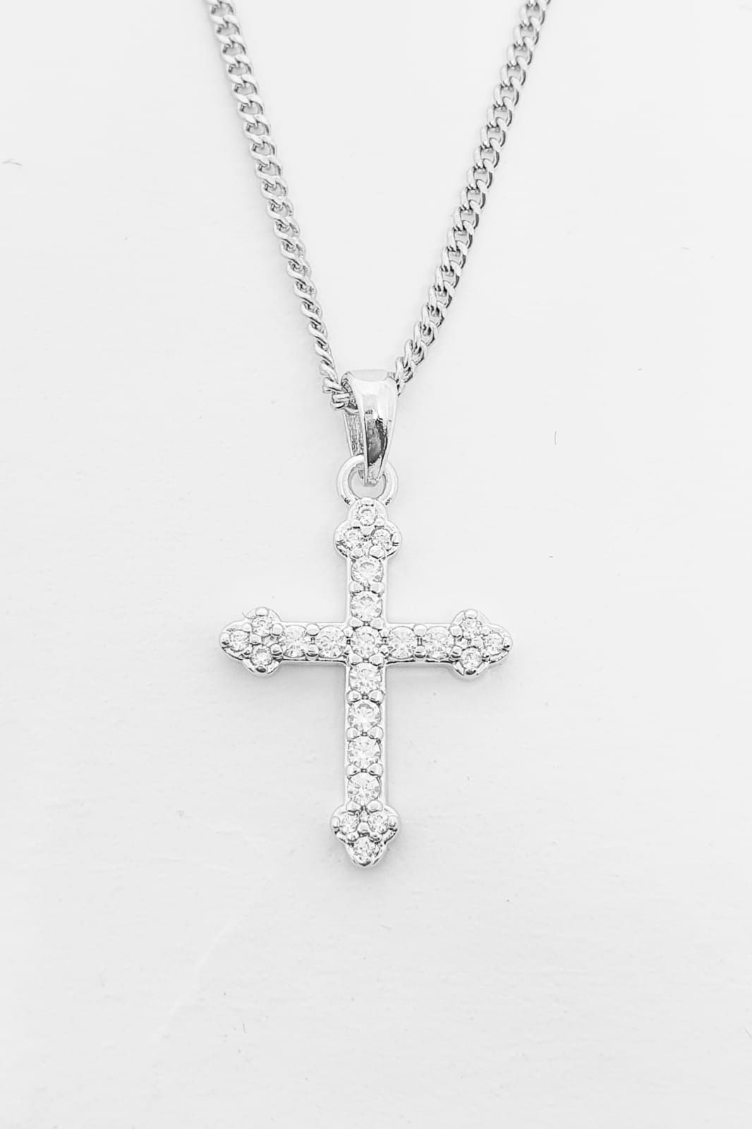 Pingente Cruz Cravejada Palito (13,2X19,7mm) Banhado A Ouro Branco PIN001