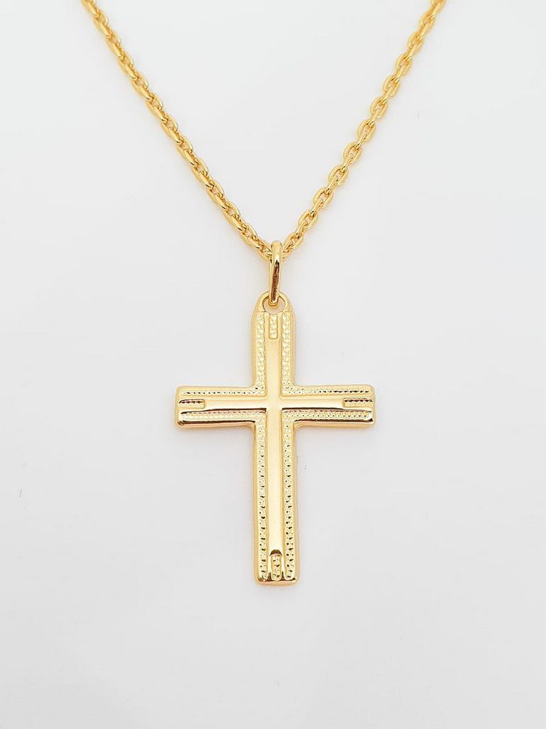 Pingente Cruz Detalhada (24X36mm) Banhado A Ouro 18k PIN006