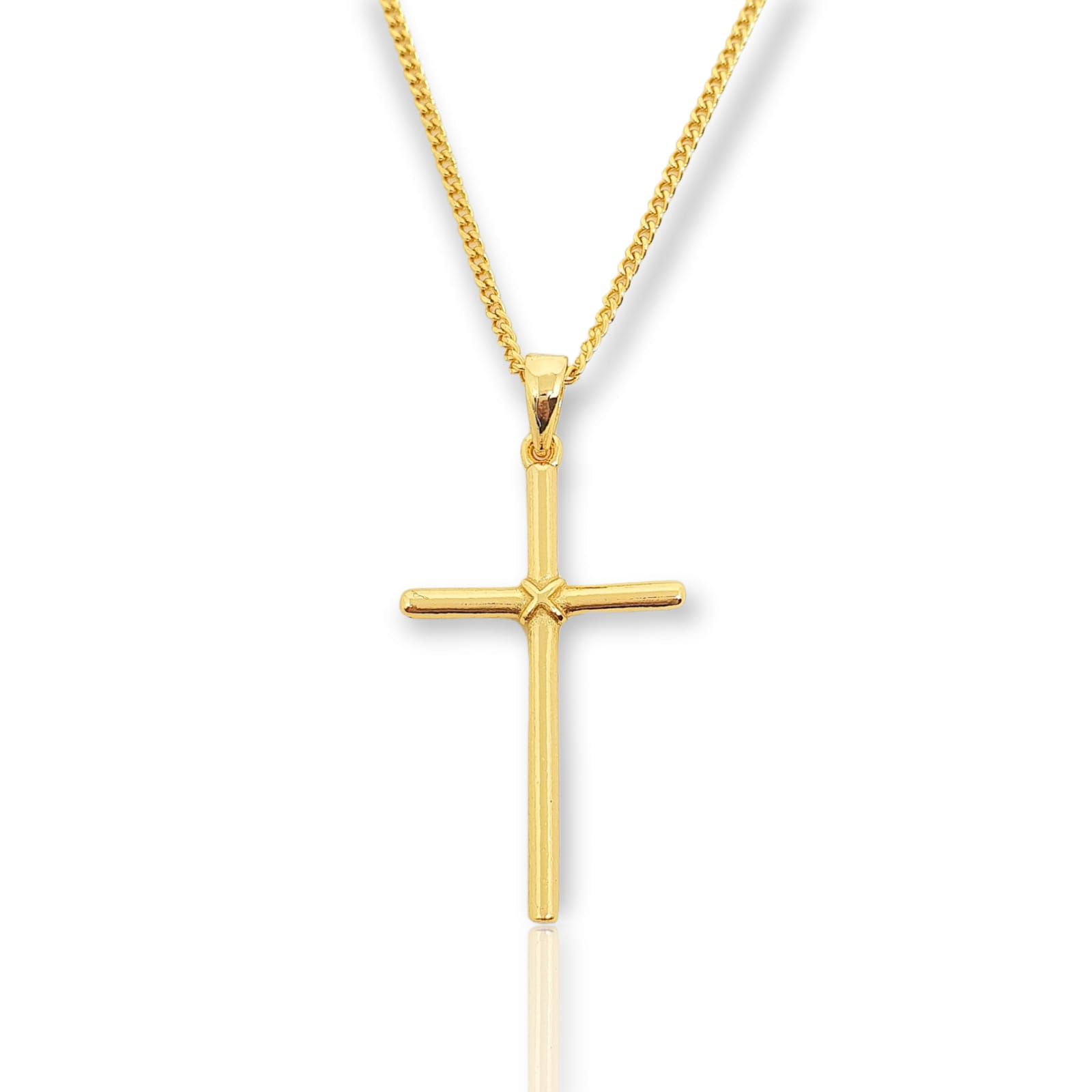 Pingente Cruz Palito com Detalhe Trançada (18,5x30mm) Banhada A Ouro 18k PIN011