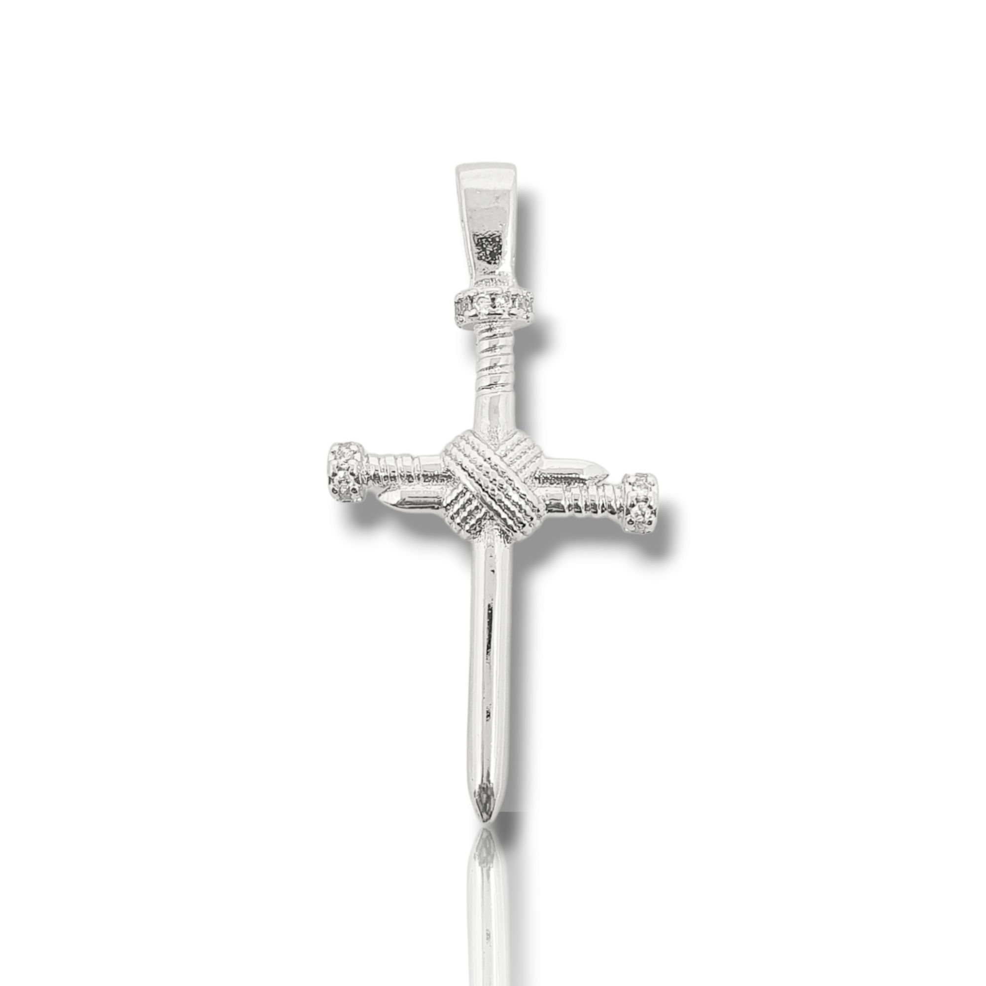 Pingente Cruz Prego Trançada (17x34mm) Banhado A Ouro Branco PIN084
