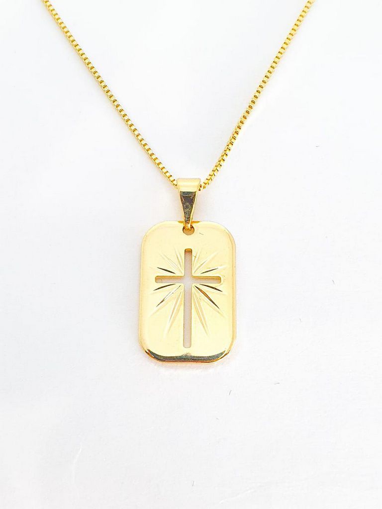 Pingente Medalha Com Cruz Vazada (13x20mm) Banhada A Ouro 18k PIN015