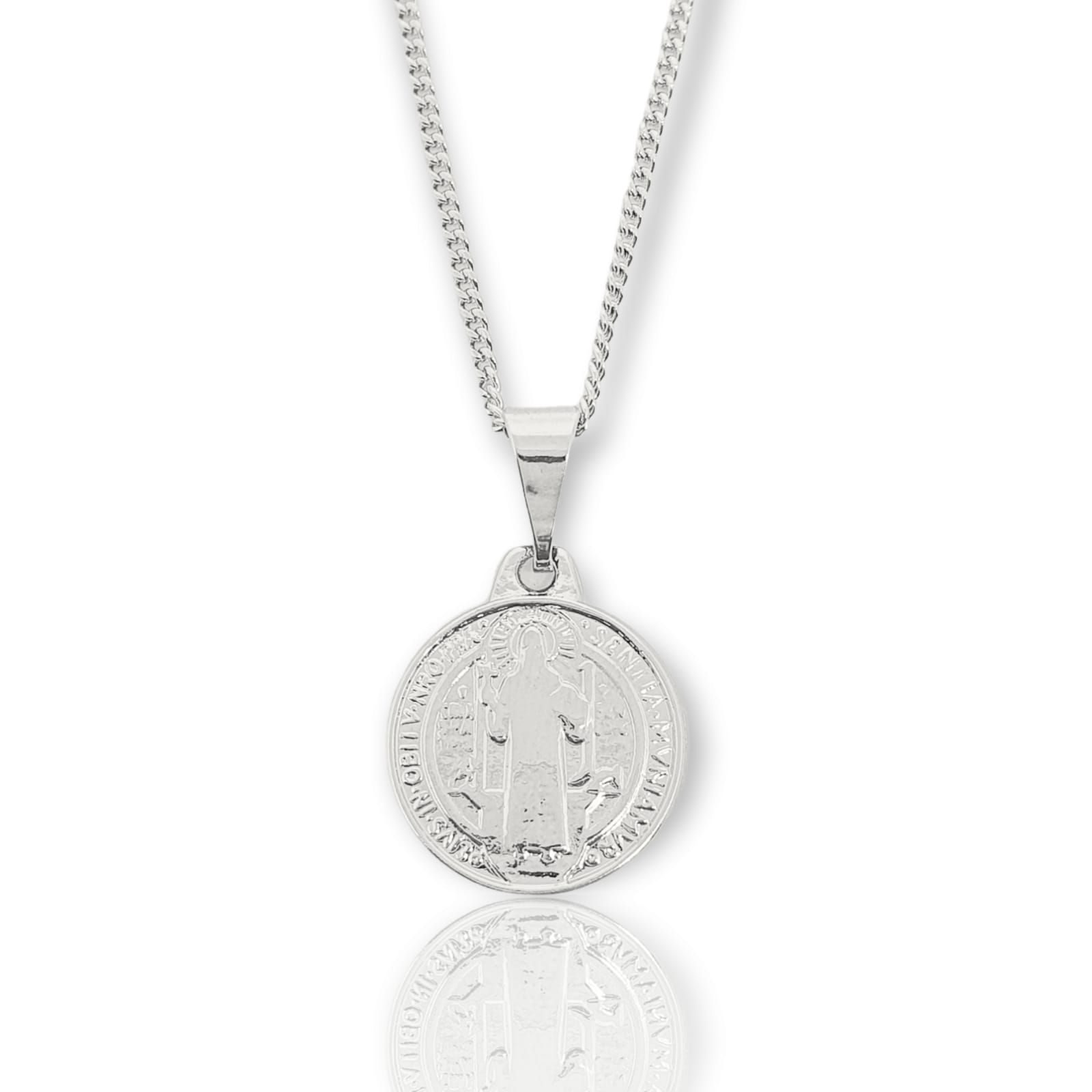 Pingente Medalha São Bento (15,5X15,5mm) Banhado A Ouro Branco PIN023