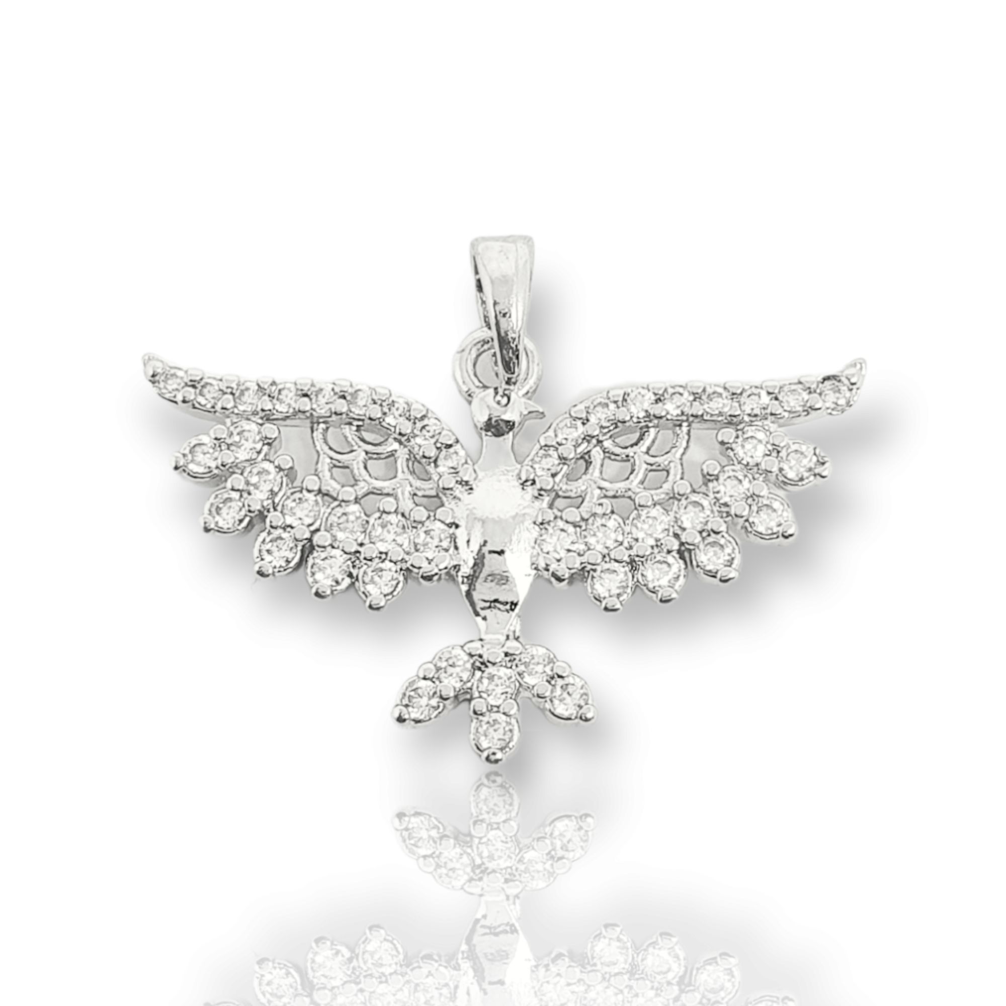 Pingente Passaro Cravejado (24,3X15,2mm) Banhado A Ouro Branco PIN014