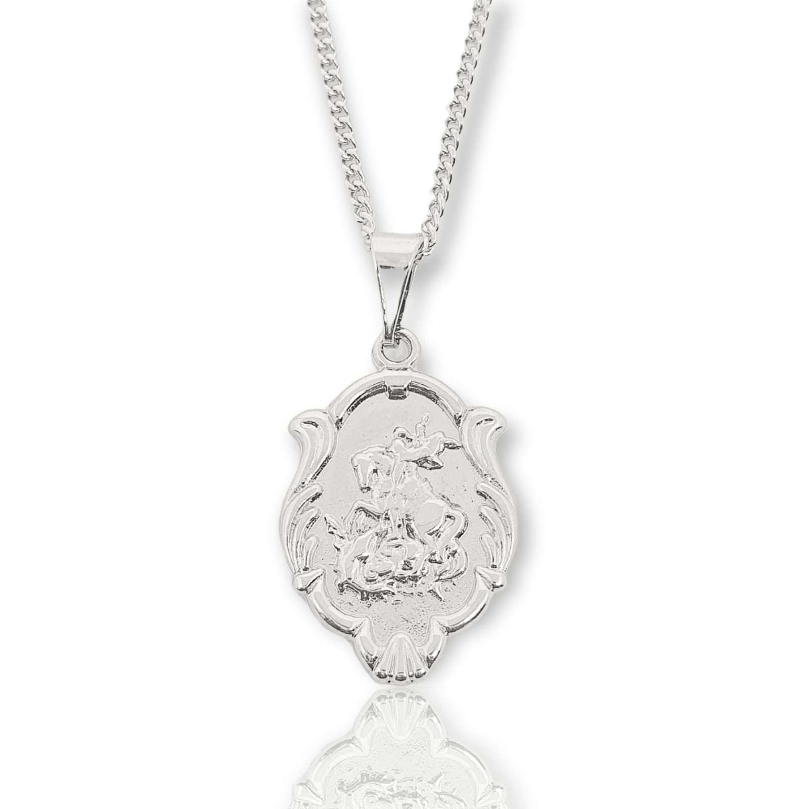 Pingente Placa São Jorge Detalhada (14,9X22,6) Banhado A Ouro Branco PIN057