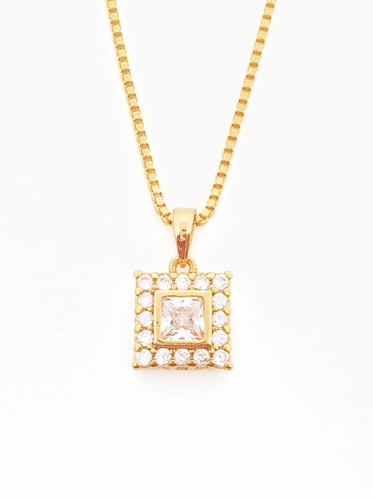 Pingente Quadrado Cravejado (9mm) Banhado A Ouro 18k PIN028