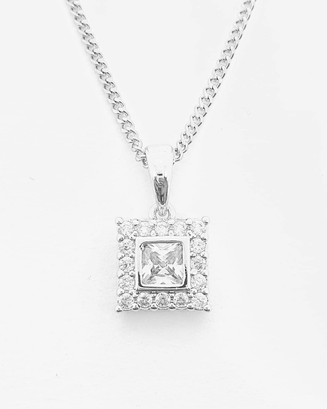 Pingente Quadrado Cravejado (9mm) Banhado A Ouro Branco PIN008