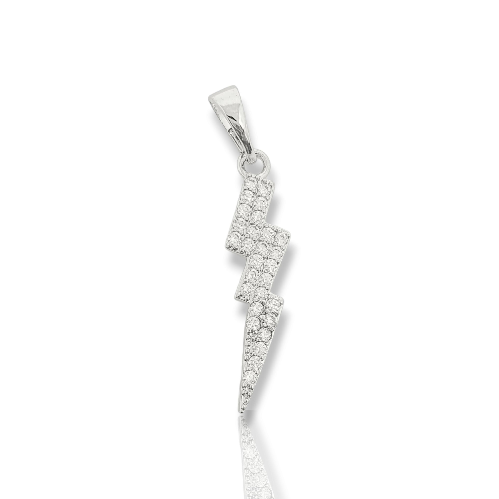Pingente Raio Cravejado (21x6mm) Banhado A Ouro Branco PIN096
