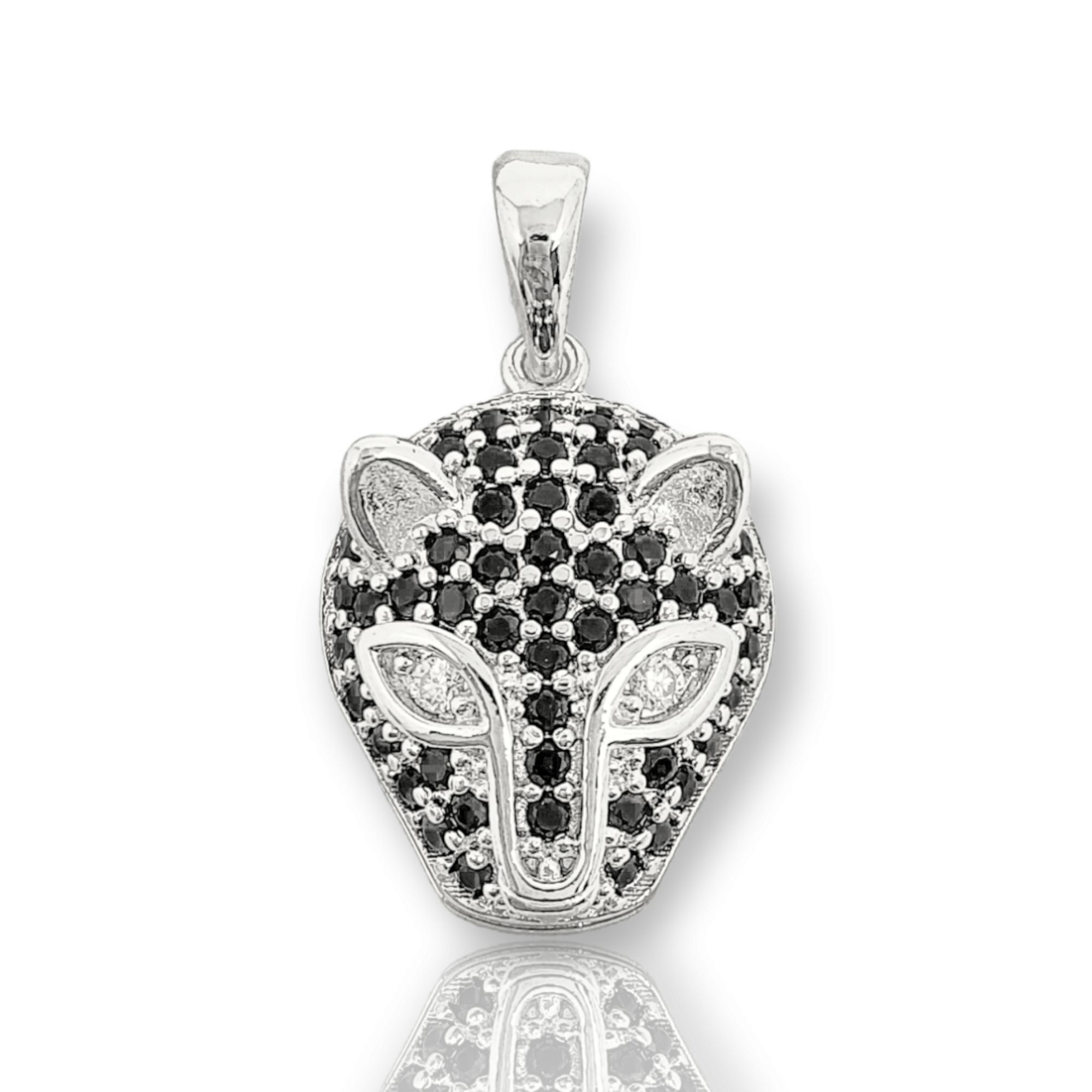 Pingente Tigre Com Pedra Preta (13X17mm) Banhado A Ouro Branco PIN018