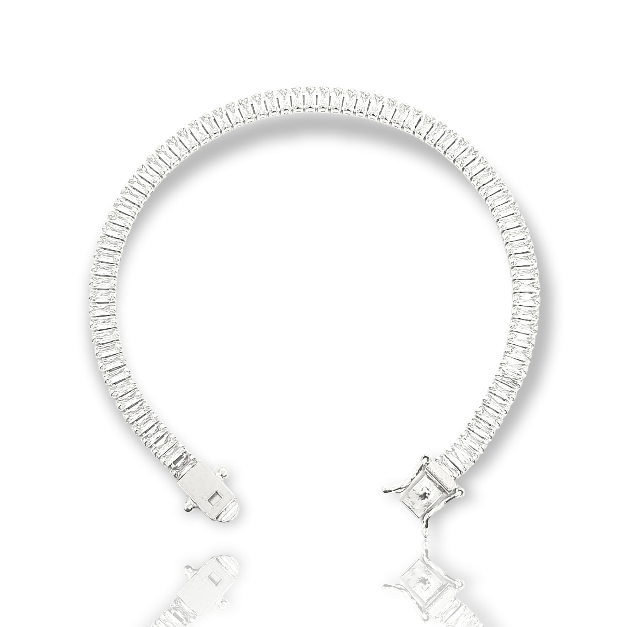 Pulseira Riviera Retangular 5mm Fecho Gaveta Banhada A Ouro Branco PUL038